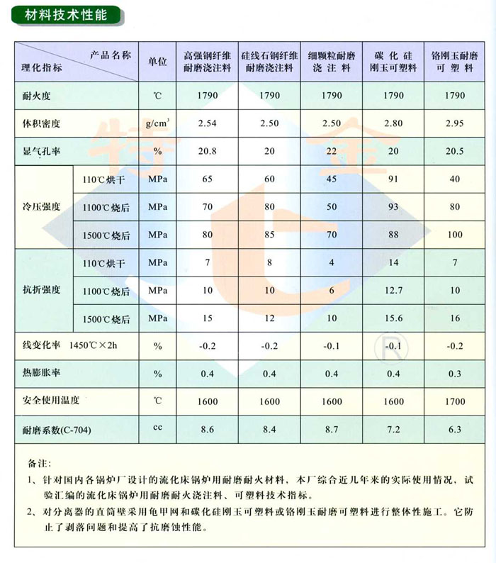 流化床锅炉用耐磨耐火材料浇注料.可塑料
