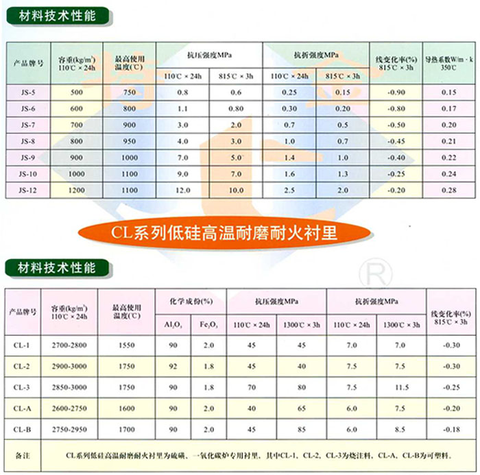 材料简介 JS系列隔热耐火衬里材料是一种新型不定型耐火材料,由优质超强轻质骨料、超细粉、结合剂和外加剂组成,是一系列密度低、强度高、导热系数小的新型隔热耐火衬里材料。该系列材料广泛用于石化工业各类加热炉,常减压、焦化、重整、加氢、制氢、一氧化碳炉等装置。